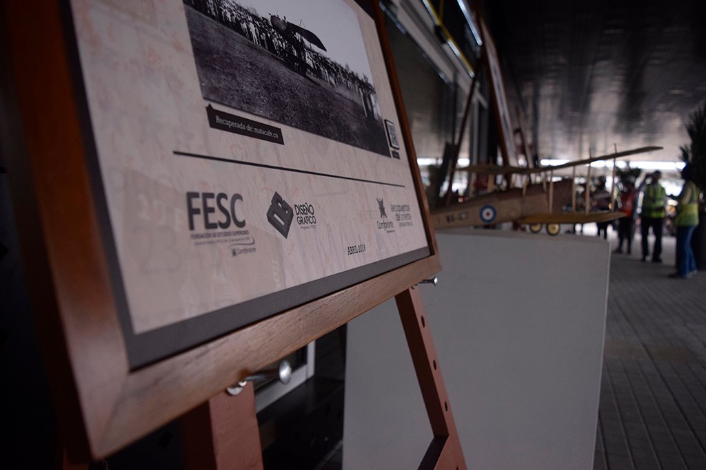 El primer enfoque de participación fue desde el programa de diseño, por medio de una exposición fotográfica que redacta una línea de tiempo de la aviación mundial terminando en el contexto local con el primer colombiano, Camilo Daza y que estará en exhibición por varios días. El segundo enfoque se pensó y se realizó desde diseño de modas en la elaboración de 2 trajes similares a los que usaron los primeros aviadores, utilizando los mismos trazos y materiales de la época. El tercer enfoque une el diseño con la tecnología, una aplicación hecha por los diseñadores gráficos de la institución permite apreciar a través de un modelado 3D la simulación de las estructuras de los diferentes aviones que participan en la historia.
