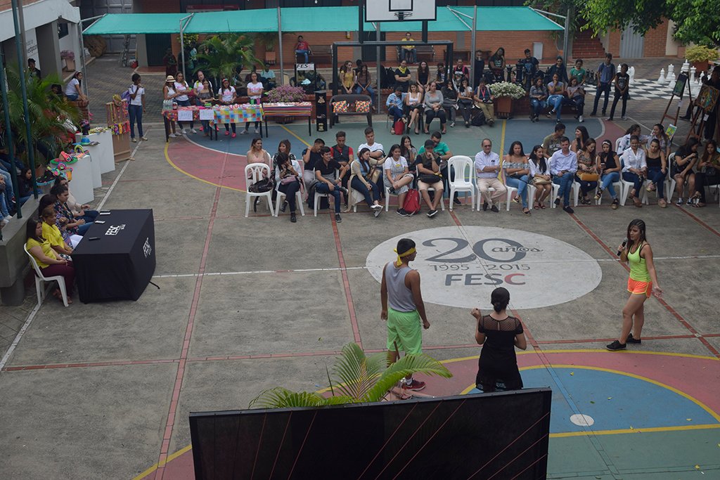 En el marco de las cátedras electivas que brinda la FESC desde la oficina de Bienestar Institucional, se organiza la primera muestra cultural nombrada: Arte Conciencia. Realizada el pasado 7 de junio, donde resaltaron las habilidades creativas e integrales de los estudiantes y las metodologías lúdicas de los docentes para el fortalecimiento de cada uno de los programas de la oferta académica.