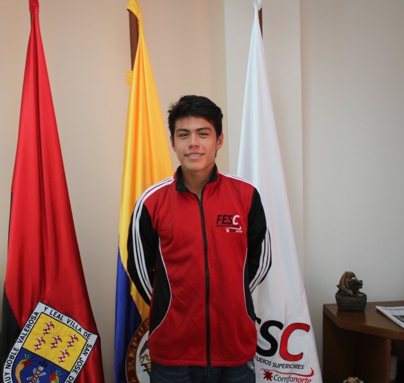 Jhampier Melano se siente orgulloso de haber logrado este avance en el deporte nortesantanderano y dichoso por los pasillos de la FESC, comparte con sus amigos y docentes su felicidad.