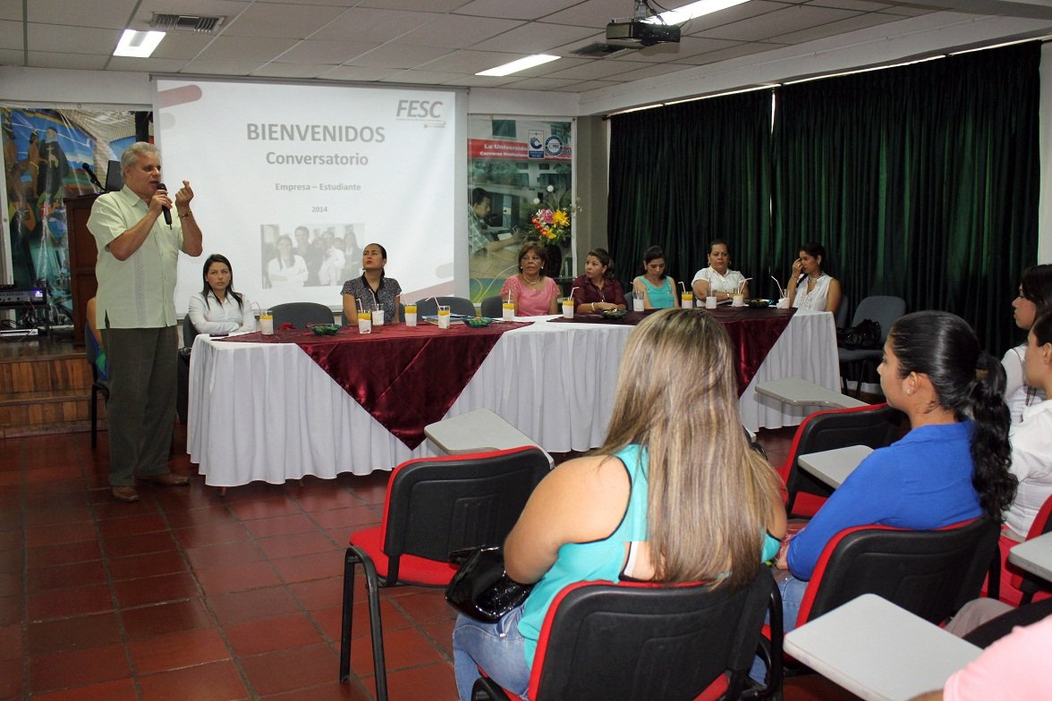 El pasado jueves 13 de febrero se llevó a cabo en las instalaciones de la FESC, el conversatorio programado para la interacción de estudiantes y empresarios con el ánimo de concertar opiniones conjuntas acerca de las expectativas laborales a las que deben responder los futuros profesionales en su etapa de práctica profesional.