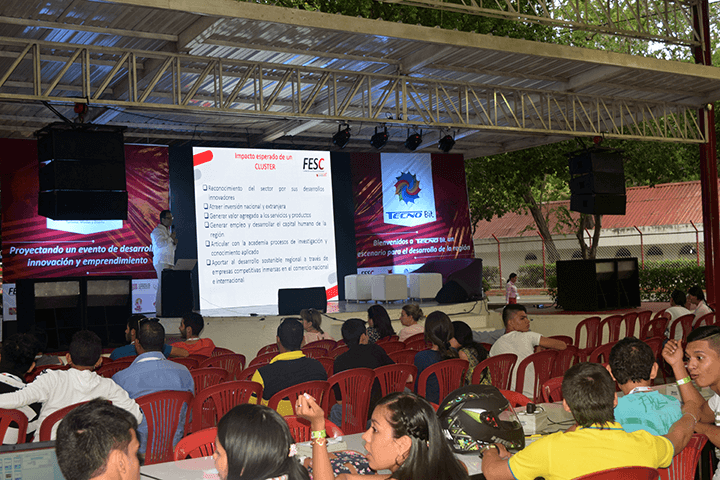 Luego de estas dos charlas, la audiencia entera de Tecno Bit se dio cita en el escenario principal, gammers, participantes, estudiantes de la región se agruparon para dar la bienvenida al evento que contó con la participación de Claudia Uribe, directora de Comfanorte, Carmen Quero, rectora de la FESC, Sandra Sulay Fuentes, secretaria TIC de Norte de Santander y Angélica Lichilín, gerente general de Arysta.