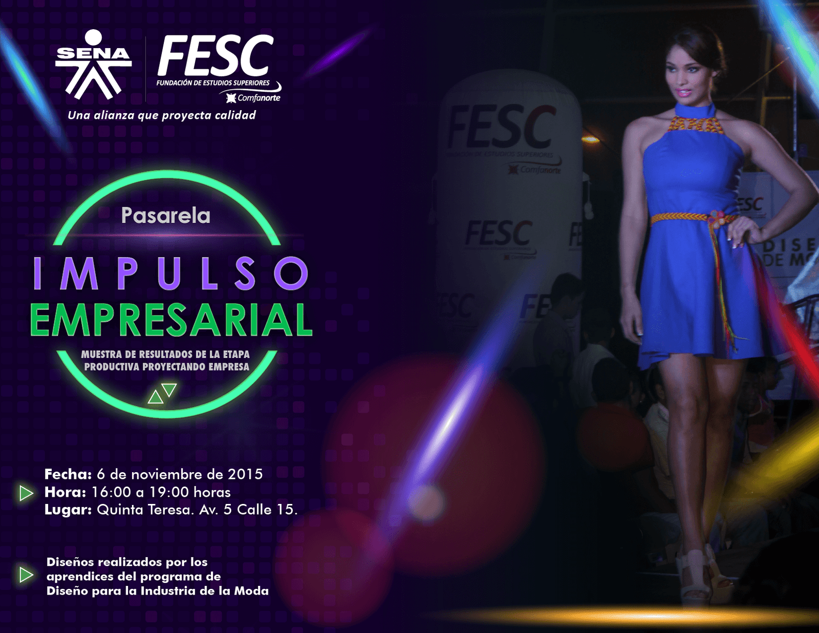 Durante seis meses los estudiantes de diseño para la industria de la moda trabajaron el ultimo módulo llamado etapa productiva, este constaba en crear una empresa de confección que implementara la nueva tendencia de colecciones cortas, es decir, que su colección debe durar 15 días y la deben estar renovando constantemente pero sin cambiar el concepto de moda, para lograr esta estrategia los aprendices realizaron estudios de mercados donde conocieron y aprendieron los gustos de su público objetivo y así mismo para tener un concepto completo y renovado se manejaron conceptos de ISCI de moda y técnicas de patronaje e lustración logrando crear prendas de excelente calidad, precio y acordes con las últimas tendencias de la moda.
