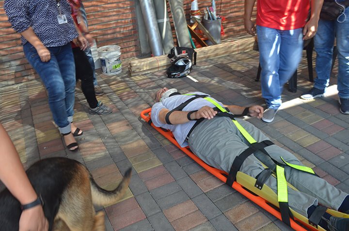 Las alarmas sonaron a eso de las 9:20 am, el humo y la pólvora fue lo que destapo la emergencia y en menos de un minuto se empezaron a ver los estudiantes evacuar las aulas de clase, todos caminaban manteniendo la calma hacia el punto de encuentro y al mismo tiempo el equipo de primero auxilios rescatando al vicerrector Académico quien fue el que se hizo pasar como herido, minutos después de seguir el proceso de verificación de signos vitales fue montando en camilla y llevado a un lugar seguro donde estaba la ambulancia, en el punto de encuentro habían más de 500 estudiantes, personal docente y administrativo.