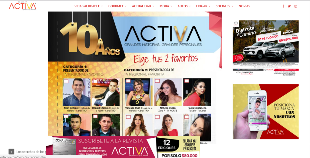 Vota en los PREMIOS REVISTA ACTIVA por PAOLA CRISTANCHO en la CATEGORÍA 2: PRESENTADORA DE TV REGIONAL FAVORITA.