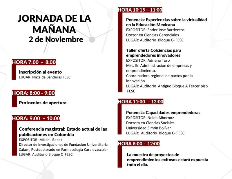 Para más información contactarse con la Directora de Investigaciones FESC, al correo: Esta dirección de correo electrónico está siendo protegida contra los robots de spam. Necesita tener JavaScript habilitado para poder verlo. .