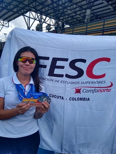 Es grato para la Fundación de Estudios Superiores de Comfanorte -FESC-, informar nuevamente el triunfo de nuestra deportista de patinaje Mayerly Amaya Villamizar, del programa de Administración Financiera, quien obtuvo medalla de plata en prueba 200 metros contra reloj, medalla de bronce en pruebas 10.000 metros individual eliminatoria y 500 metros baterías y cuarto lugar para la FESC entre universidades en el marco de los XXVII Juegos Universitarios Nacionales ASCUN, que se desarrollaron en la ciudad de Medellín del 10 al 23 de octubre.