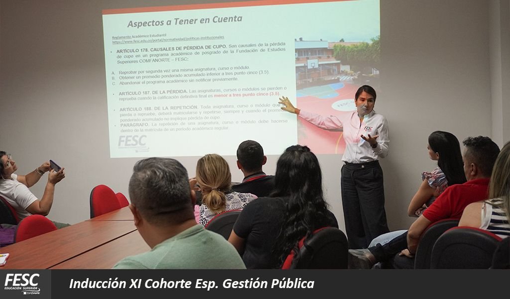 En esta jornada de Inducción, estuvo presente el docente José Fabio Torres Parada, quien dirige el módulo Políticas Públicas. También estuvo presente la Coordinadora Gestión de Medios Educativos, Deiby Consuelo Lara Grecco, hablando sobre los recursos y herramientas digitales y físicas a las que tienen acceso los estudiantes, y un factor importante, como las líneas de Bienestar Institucional, indispensables para el óptimo desarrollo de su proceso formativo, estas fueron expuestas por Ricardo Andrés Álvarez, Coordinador de esta área.