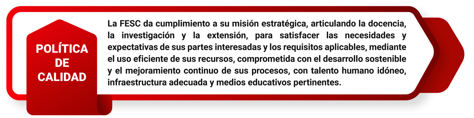 • Un Sistema de Gestión de la Calidad que se articula al Sistema Interno de Aseguramiento FESC, favoreciendo los procesos de autoevaluación constantes y de mejoramiento continúo.